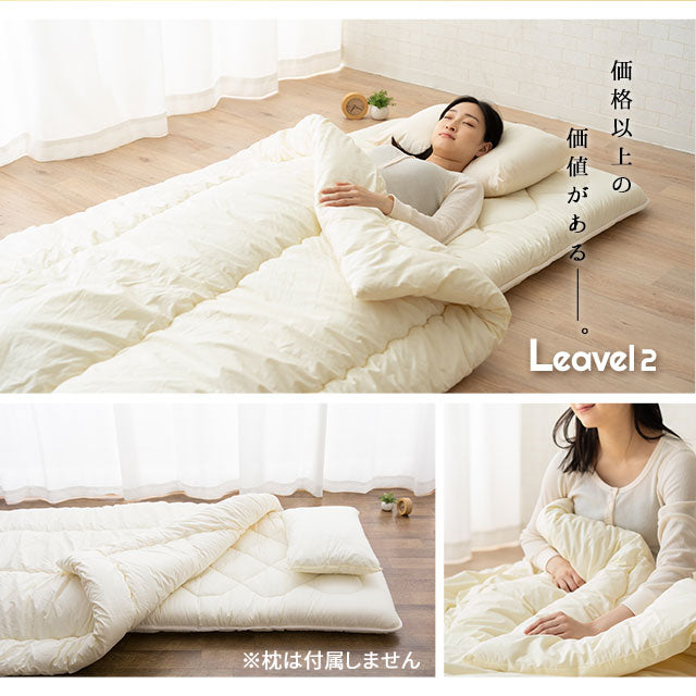 ふんわりで蒸れにくい羊毛を使用し、オールシーズン快適な日本製布団セットです。