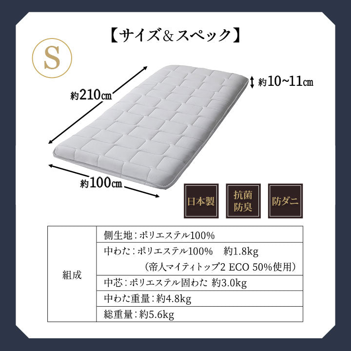 サイズ | シングルサイズ:約100×210×10~11cm |