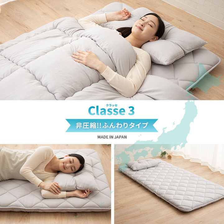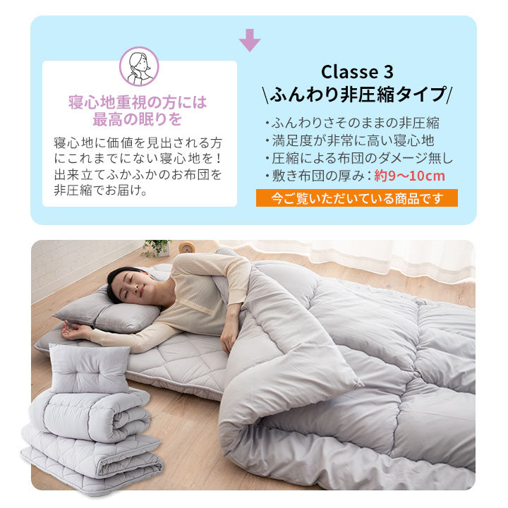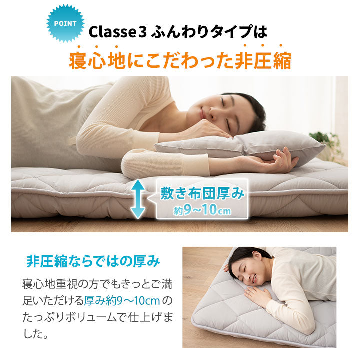 品名 | 日本製 抗菌・防臭・防ダニ 布団3点セット 「クラッセ3」 非圧縮 ふんわりタイプ |