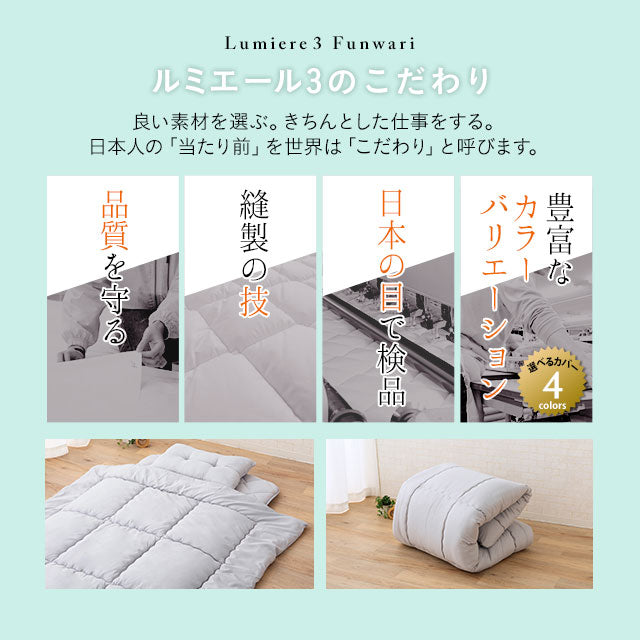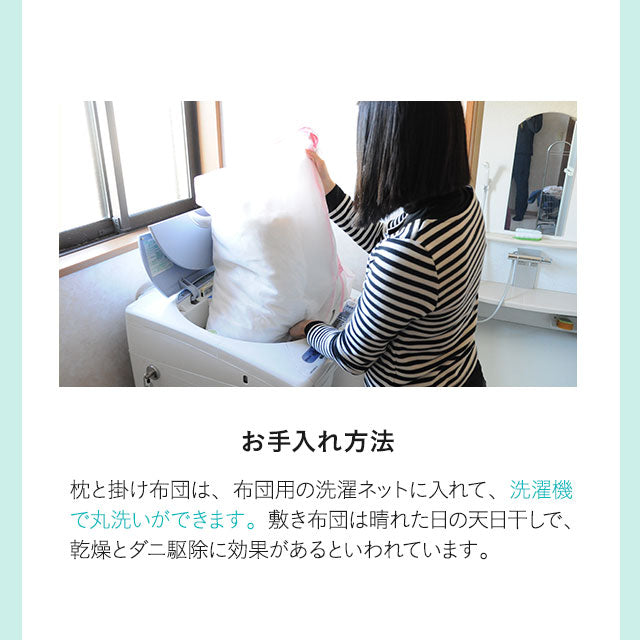 日本の職人による品質管理とこだわりで、細部まで丁寧に作られた安心の布団セットです。