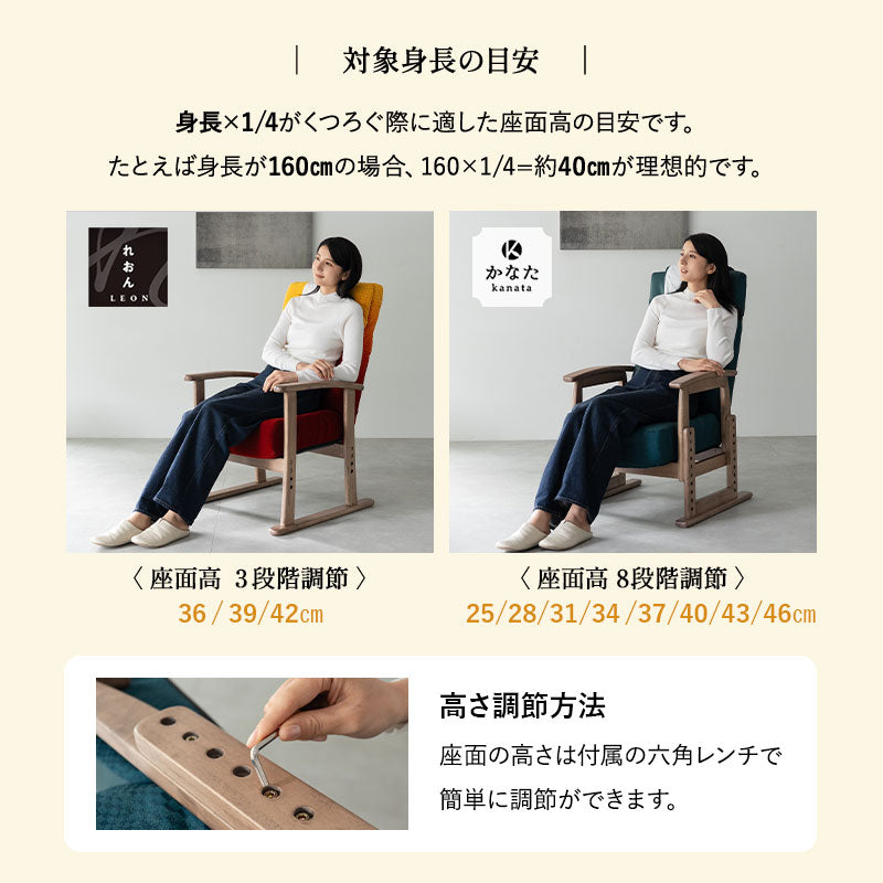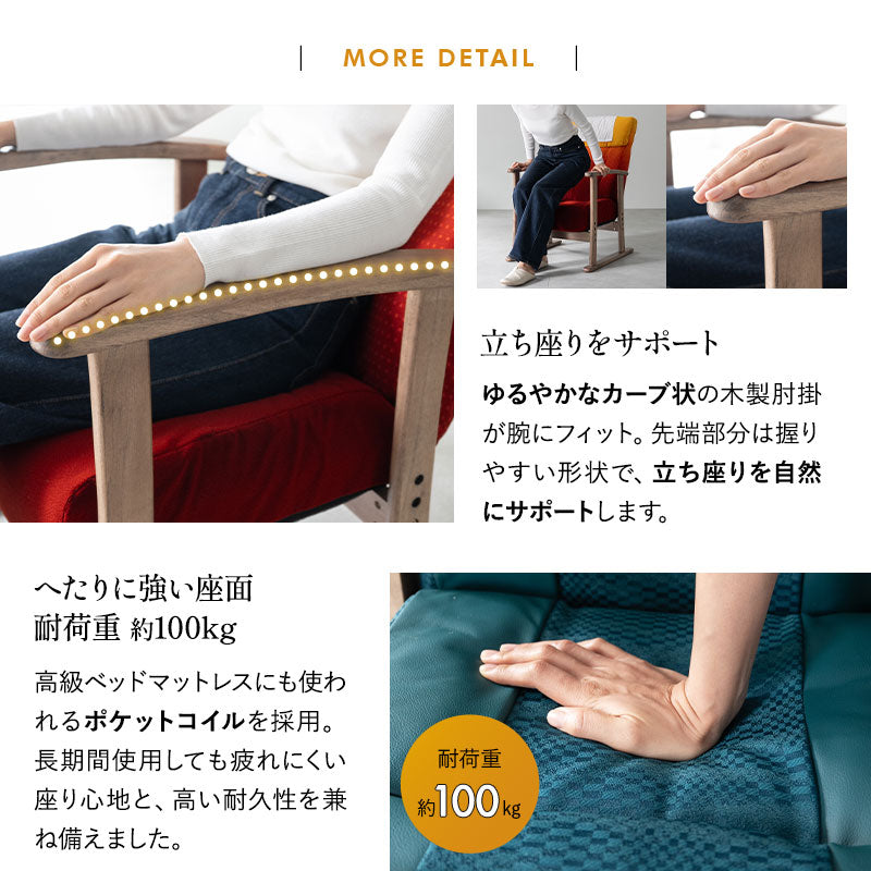 頑丈な構造と安定感のあるスキー脚、さらに立ち座りしやすい肘掛設計で安心して使えます。