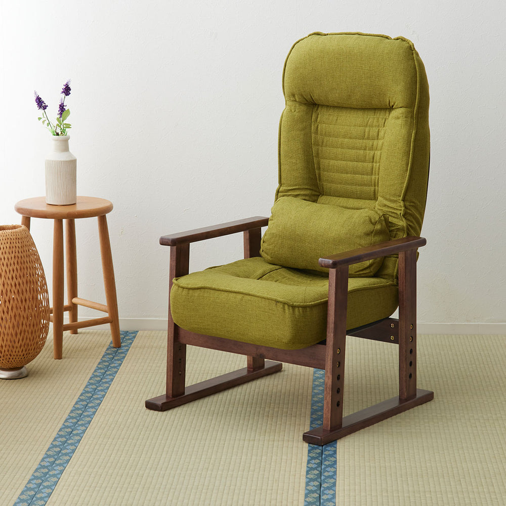 立ち座りが楽な高さと幅広い木製肘掛けで、膝や腰への負担を軽減し、安心して長くお使いいただけます。