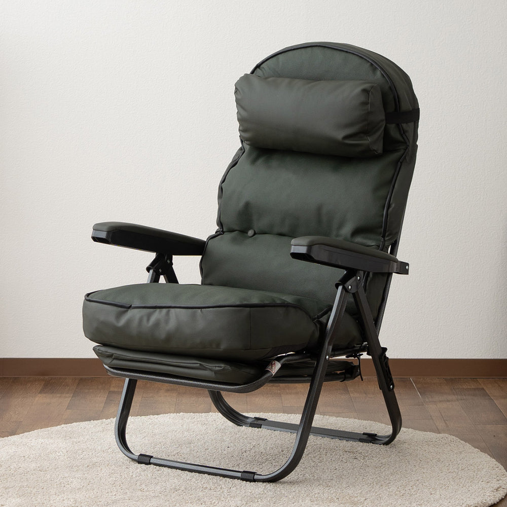 折り畳み式設計で、省スペース収納やアウトドアへの持ち運びにも便利な完成品チェアです。