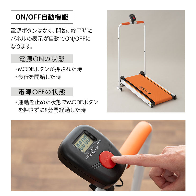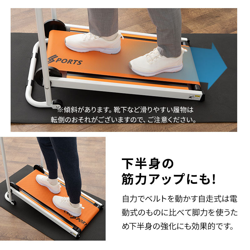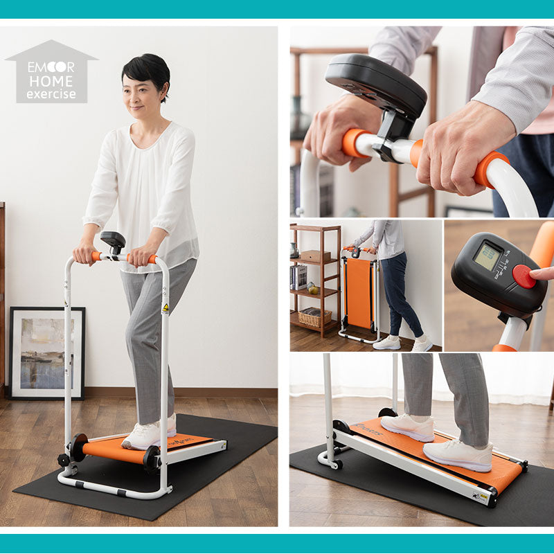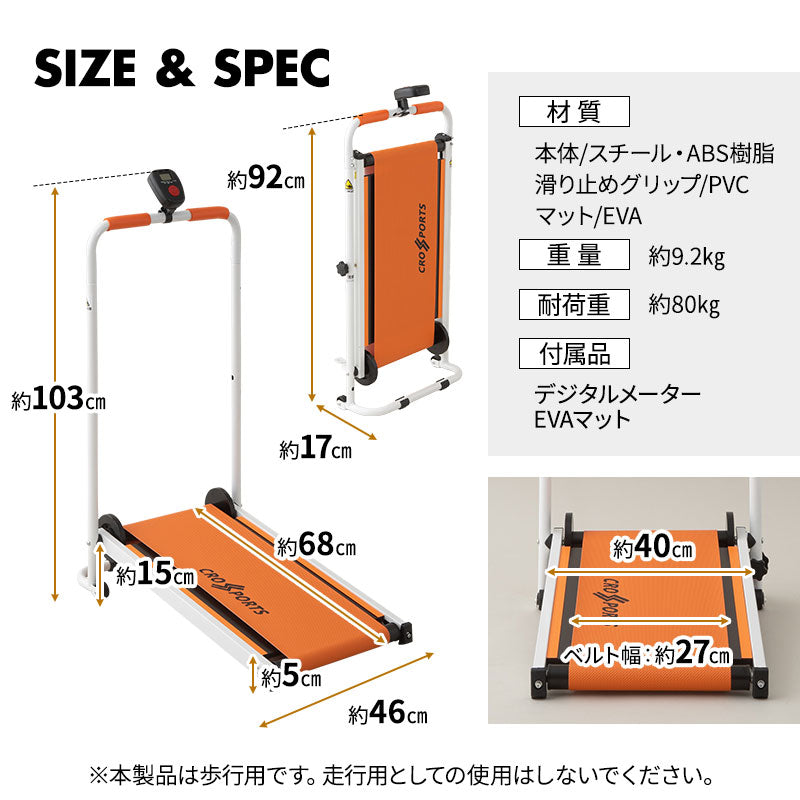 仕様 | 自走式(電源不要) 折りたたみ式 手すり滑り止めグリップ付き デジタルメーター付き キャスター付き マット付き |