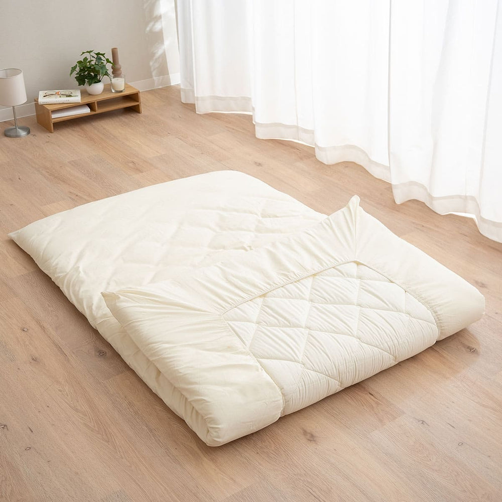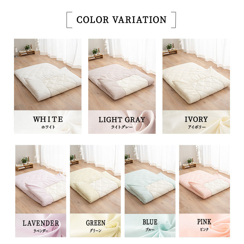 敷布団に被せるだけの周囲フィットゴム式で、ワンタッチで簡単に付け外しが可能です。