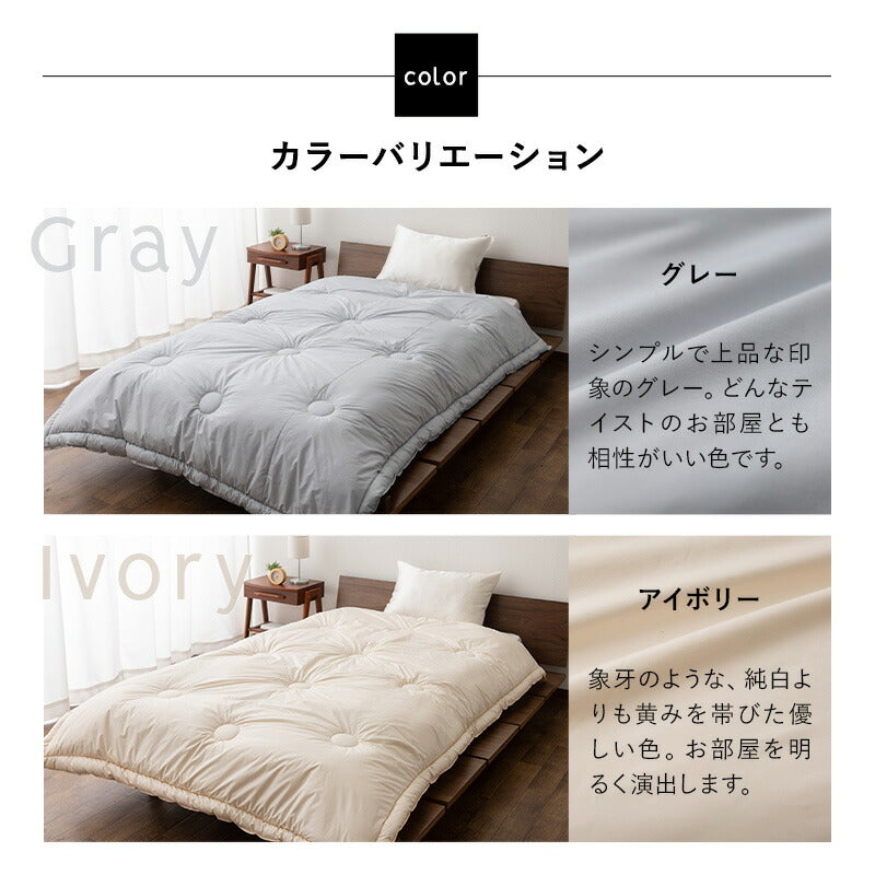 防ダニ・抗菌・防臭機能のある中わたで暖かく、遠赤外線効果で蒸れず快適に眠れます。