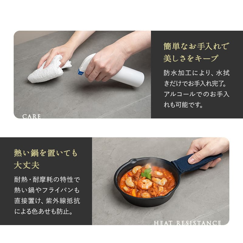 耐熱性や防水性も兼ね備えた安心の天板の