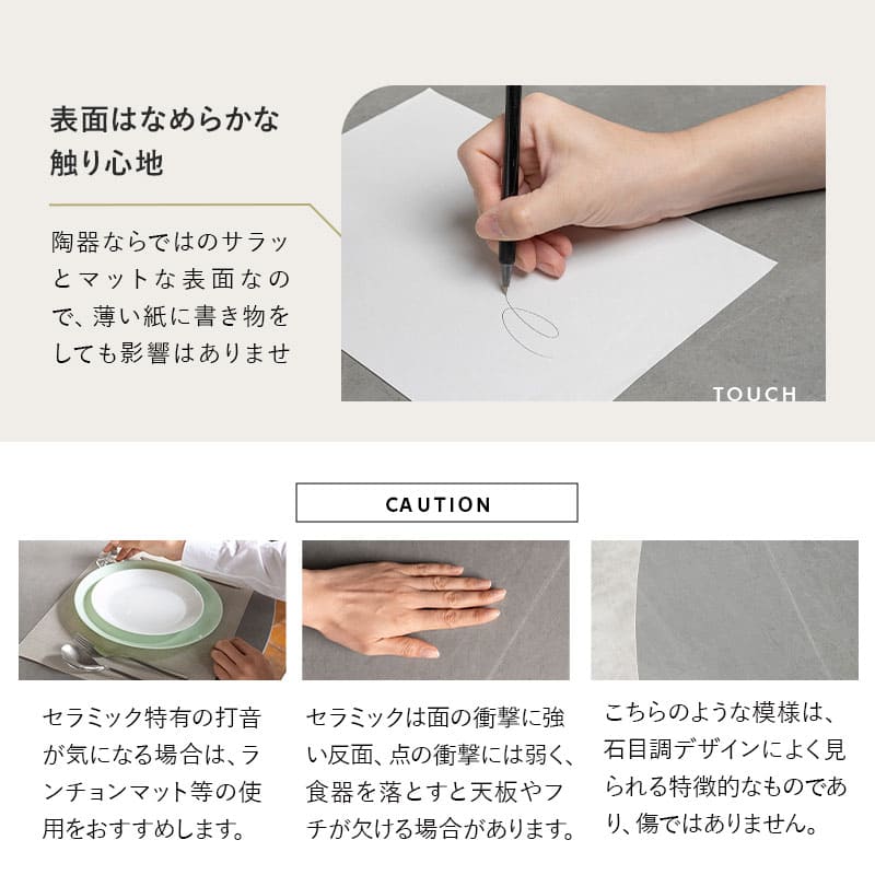 セラミック天板は耐熱・耐摩耗・防水・紫外線抵抗性に優れ、日常使いにも安心して長く美しさを保てます。