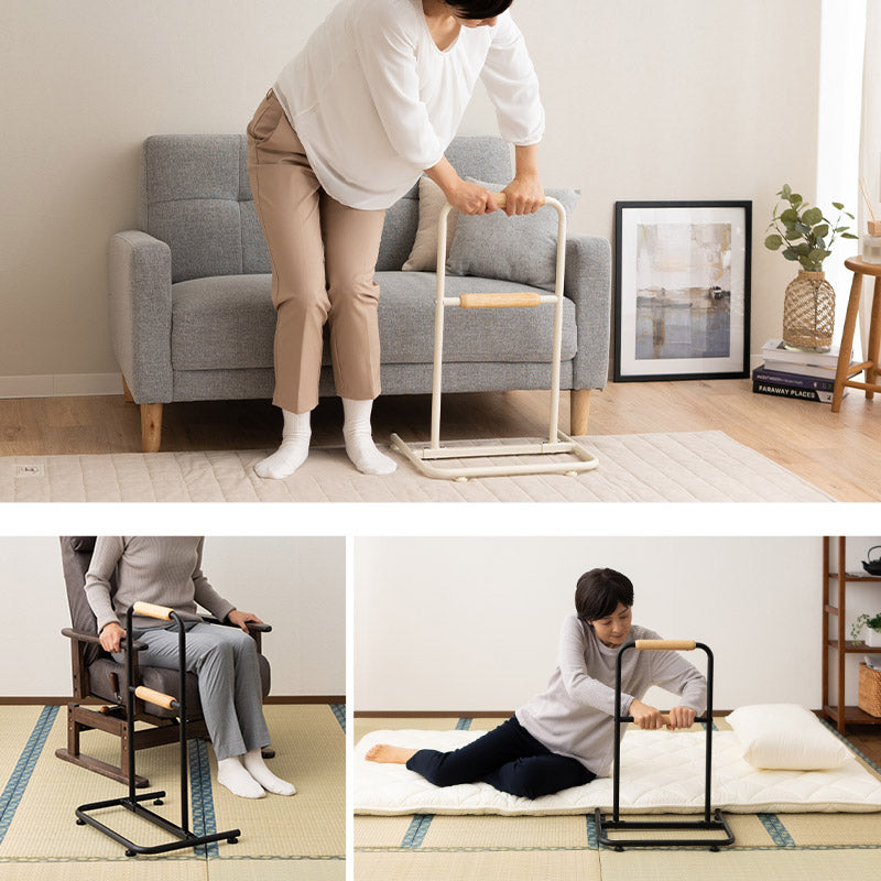 最大耐荷重約100kgの頑丈設計で、立ち上がりをしっかりサポートし、そばにあるだけで安心感を与えます。