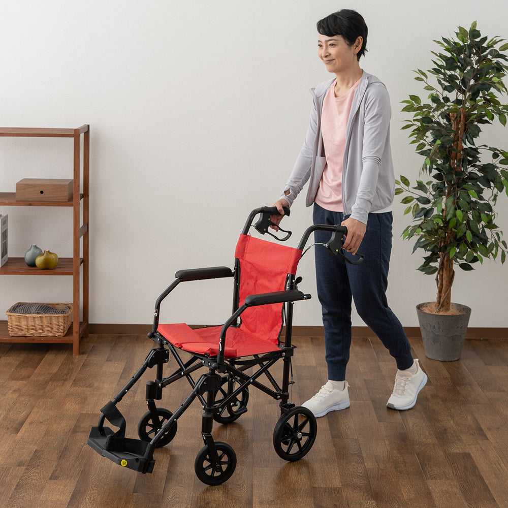 ロック機能や取り扱いが簡単な設計で、車椅子の使用経験が少ない方でも安心して使えます。