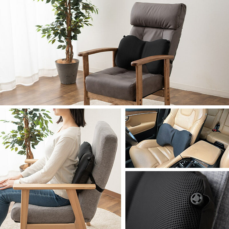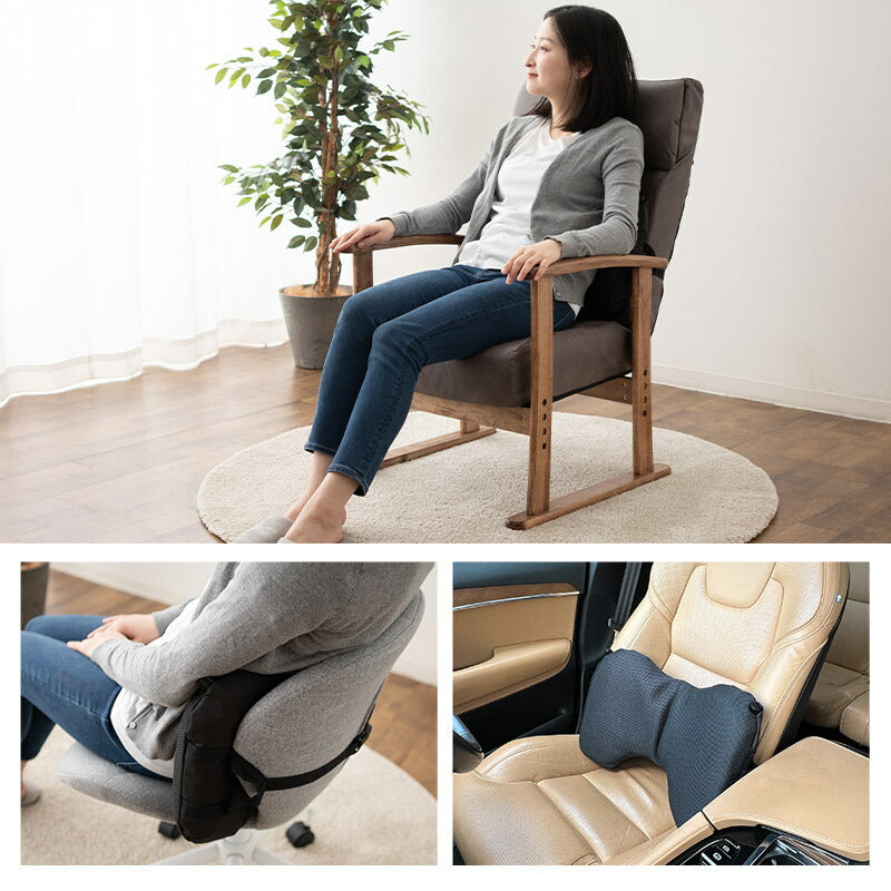 オフィスチェアや車で使いやすく、医療・介護現場でも活躍する多機能な腰クッションです。