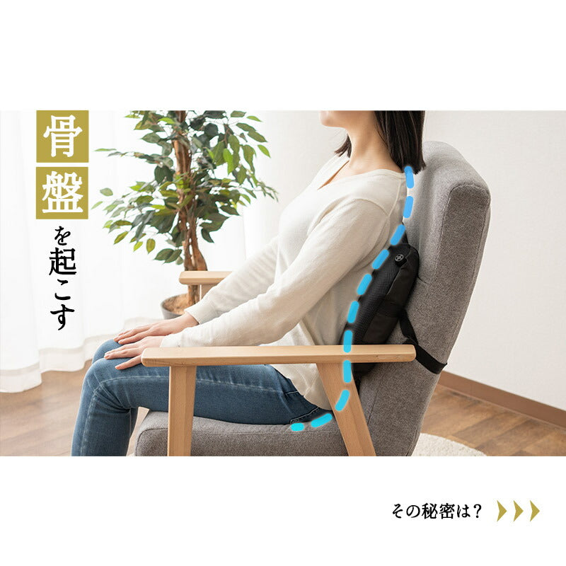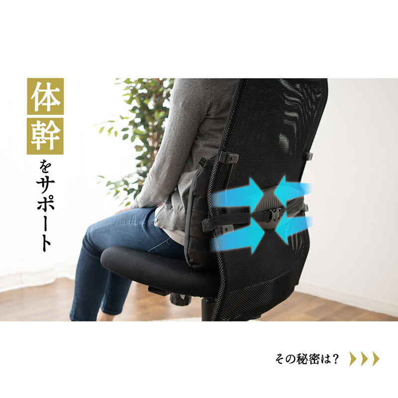 背骨のS字カーブを保ちやすく、骨盤を起こす設計で長時間座る作業でも快適に支えます。