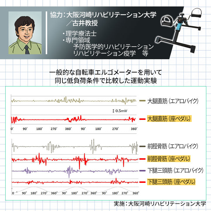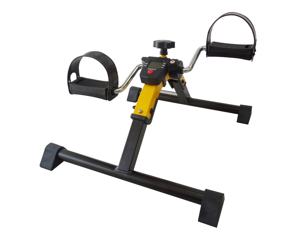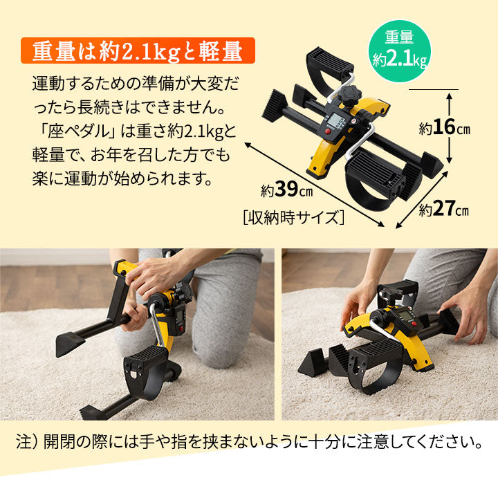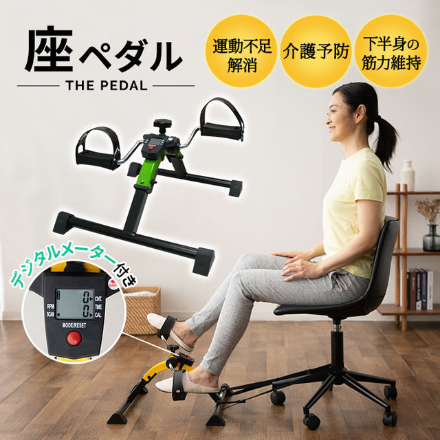 座ったまま自転車のような回転運動を室内で手軽に行え、下半身の筋力維持や介護予防に役立つエクササイズマシンです。
