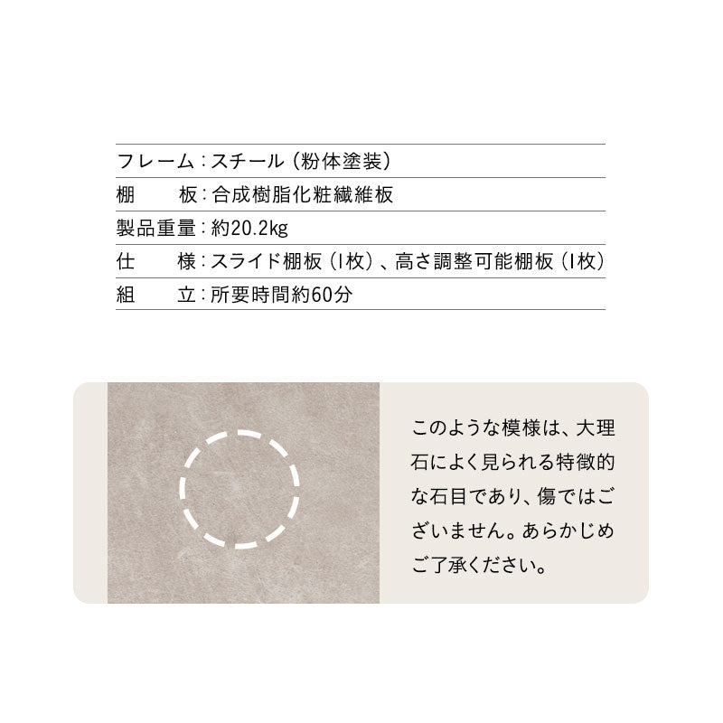 組成 | フレーム:スチール(粉体塗装) 棚板:合成樹脂化粧繊維板 |