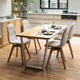 独特の無垢材天板のテーブルとシンプルなデザイン椅子4脚がセットになり、上質な空間を演出します。