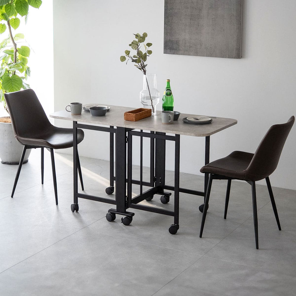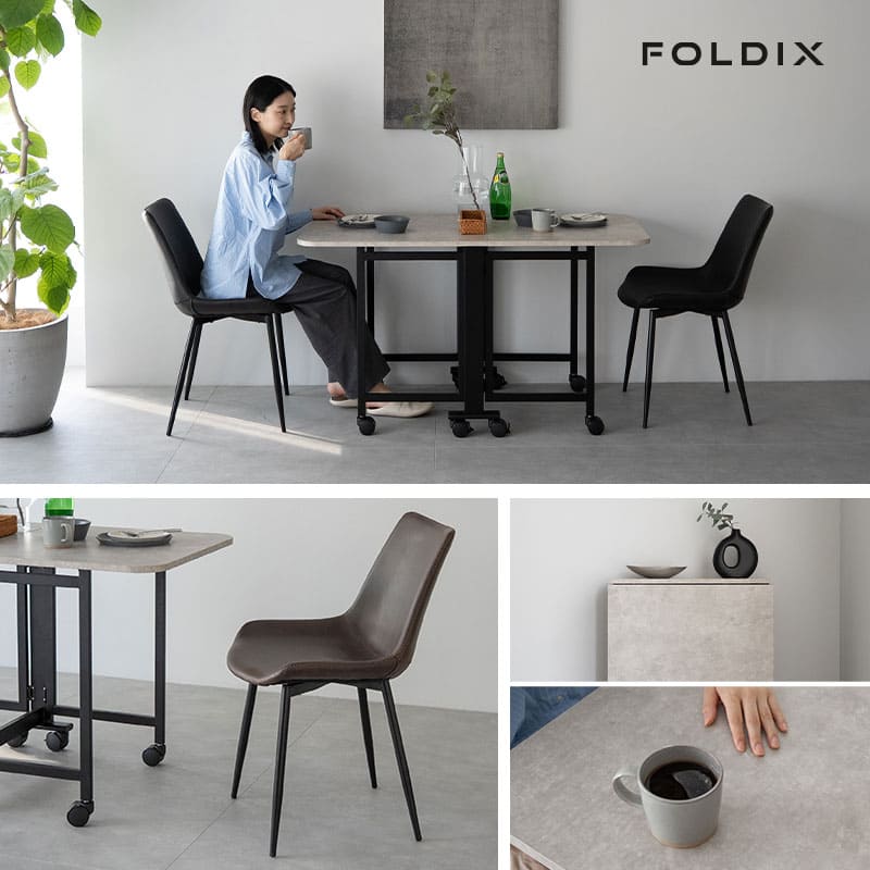 レザー調チェアは簡単お手入れと快適な座り心地を両立し、テーブルと調和する高級感です。