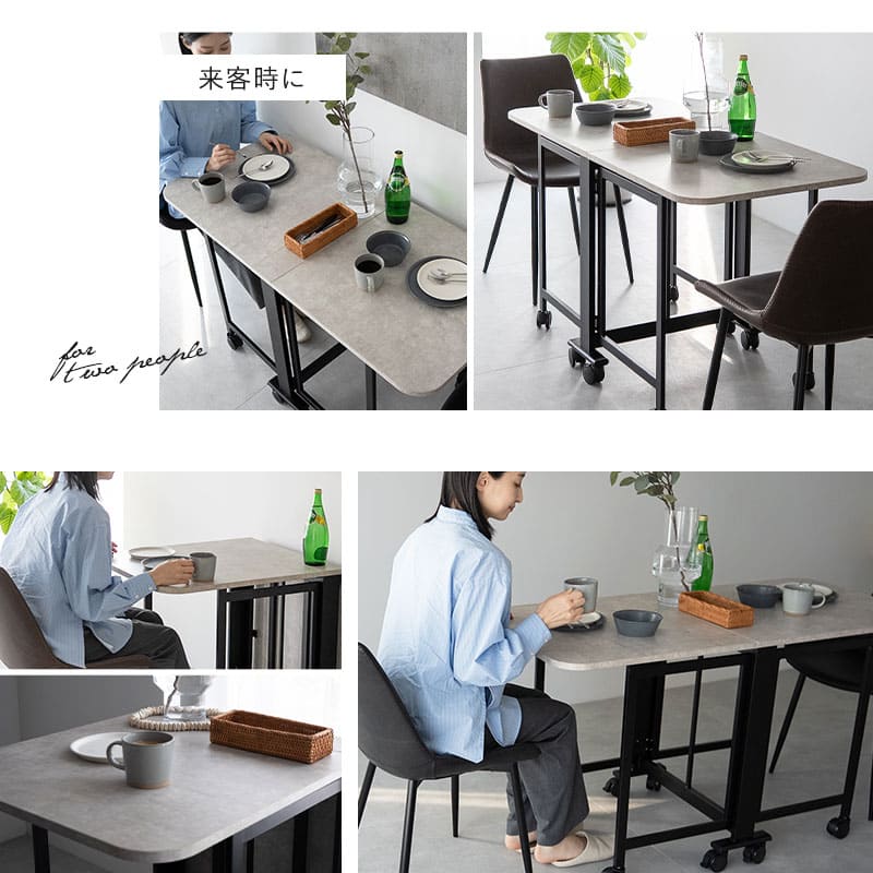 食卓やデスクとして2WAYで活用でき、用途に応じて家具を増やす必要がありません。
