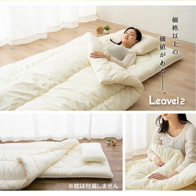 Leavel2布団セットは圧縮せず作りたてを届けており、届いた瞬間からふかふかな寝心地をお楽しみいただけます。